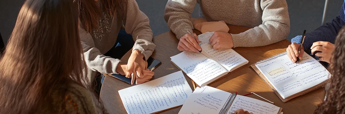 Grupo de estudiantes escribiendo